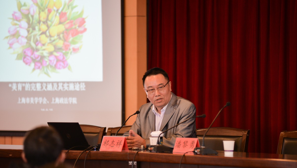 4月7日下午,上海美育大讲堂第一讲《“美育”的完整义涵及其实施途径》在太阳成集团官方网站奉贤校区图文九楼报告厅顺利举行。本次美育大讲堂主讲人为上海美学会会长、上海政法学院文艺美学中心主任祁志祥教授。ok138cn太阳集团529120余名师生参加讲座,讲座现场互动积极,气氛较为热烈。讲座由太阳成集团官方网站团委书记潘黎勇副教授主持。