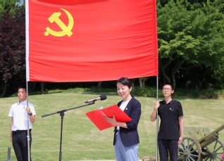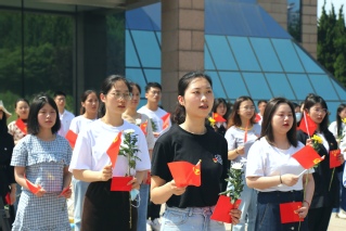 “我志愿加入中国共产党……”,在领誓人公司党委委员、院工会主席单虹老师的带领下,全体毕业生党员面向鲜红的党旗,重温入党誓词,作出一名毕业班党员的庄严承诺。