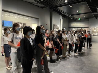 仪式之后,在讲解员们的带领下,党员同志们参观龙华烈士纪念馆,照片墙上一张张年轻的面庞昂扬着革命的斗志;弹痕累累的羊毛背心映衬出青年伉俪的革命爱情;舞蹈与全息投影的完美结合映射出二十四烈士的英勇气势……