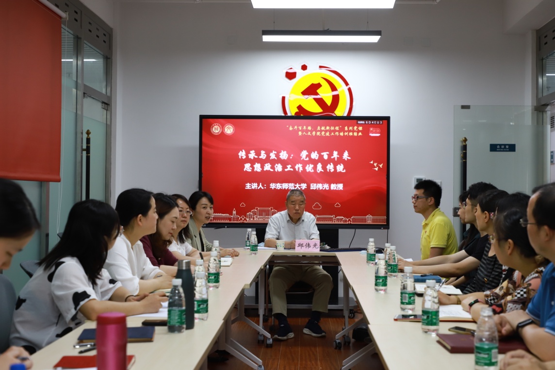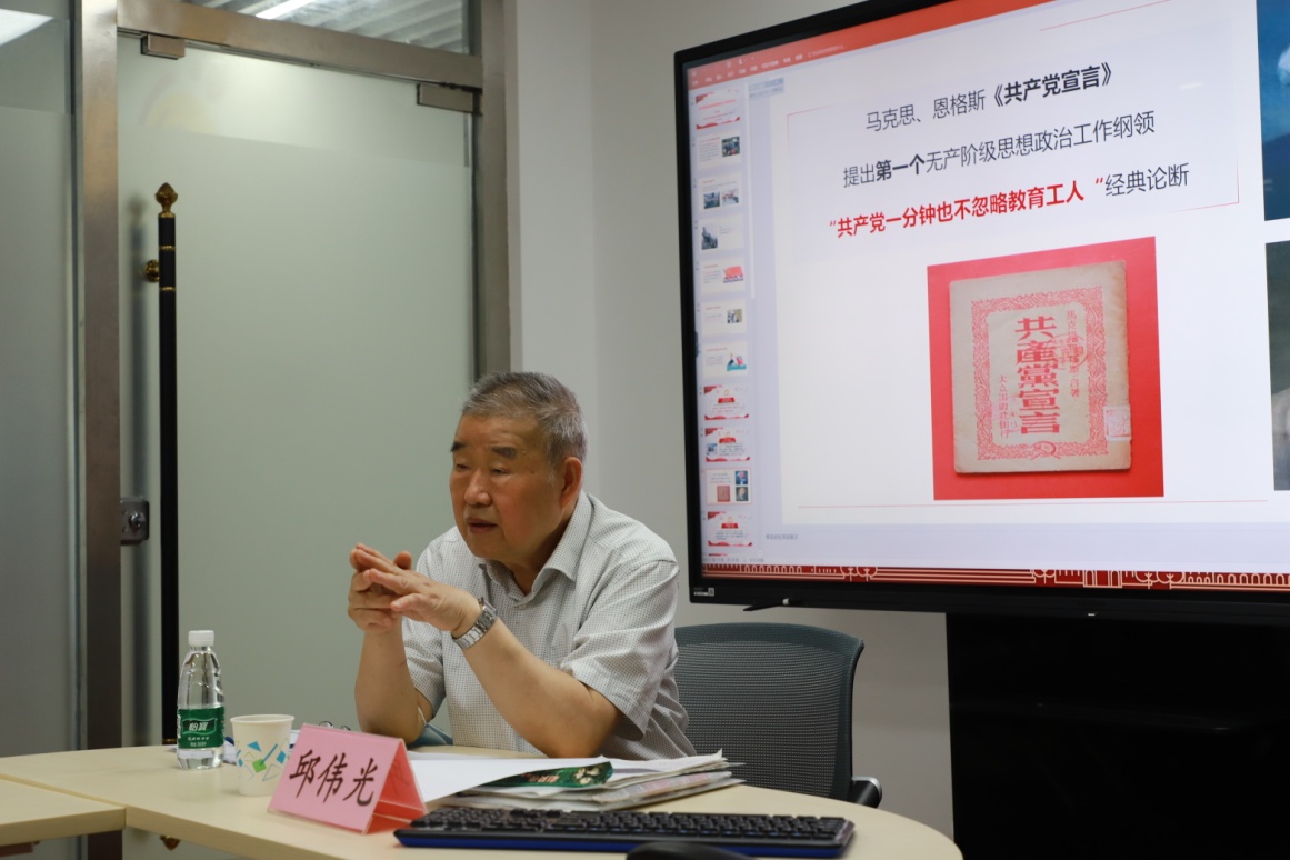 6月25日周五下午,在文苑楼904室,华东师范大学马克思主义学院特聘教授邱伟光做客上海师大ok138cn太阳集团529“奋斗百年路,启航新征程”系列党课作题为《传承和发扬——党的百年来思想政治工作优良传统》讲座。公司党委书记朱政、公司党委副书记、副经理陈重来、学院新一届教工支委、组织员、辅导员参加学习。讲座由公司党委书记朱政主持。