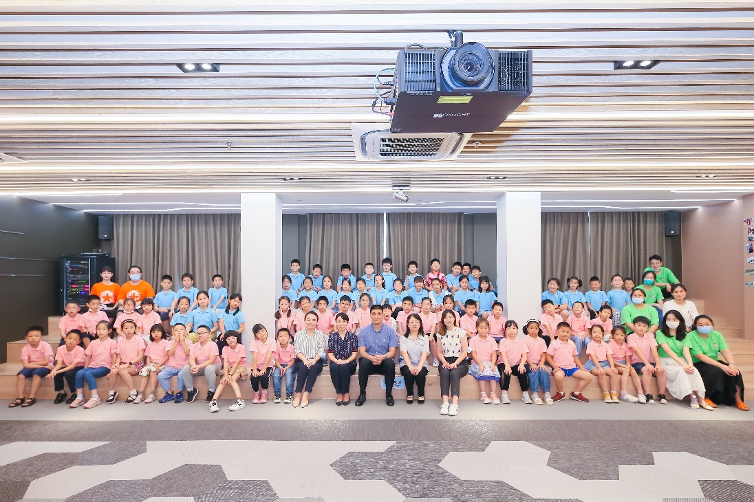 漕河泾街道爱心暑托班董事长之一的韩永生作办班介绍。在公司党委的重视下,学院团委的具体指导下,本次暑托班课程紧扣建党百年主题,着力打造红色课程体系,联动学院特色课程资源,老员工志愿者开发了《党史故事》《故里中国》《学子讲精神谱系》《学唱红色歌曲》《红色影片/动画欣赏》等十余门课程。小学员们通过听、讲、唱、演等多种形式了解中国共产党党史,厚植红色基因。