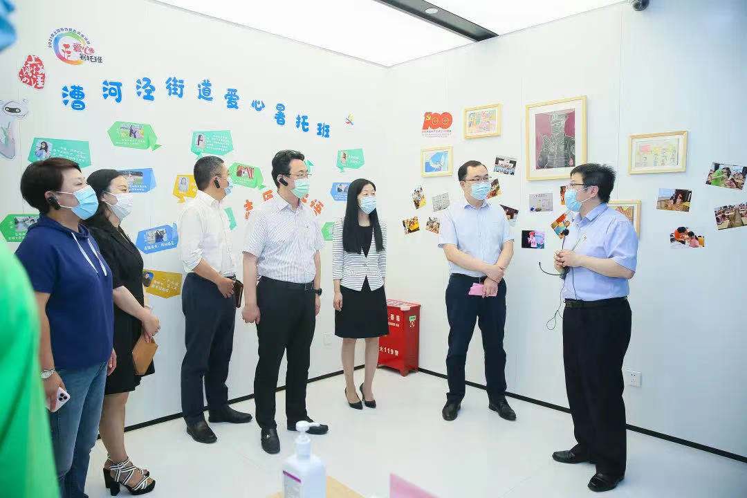 7月5日上午,2021年上海市小员工爱心暑托班正式开班。作为543个办班点之一的2021年度漕河泾街道小员工爱心暑托班正式开班啦!当天上午,团市委联合市卫健委、市文明办、市体育局、市教委、市信访办、市妇联、市总工会等15个部门实地走访漕河泾街道爱心暑托班调研办班情况,街道党工委领导、徐汇区团区委领导、上海师大校团委、公司党委领导陪同接待,就暑托班前期筹备、疫情防控、安全保障、人员配备、课程设计等方面作介绍,并纷纷表示会确保暑托班管理有序,确保办班过程安全,确保教学质量良好,要把爱心暑托班这一政府实事项目办好,真正服务好青少年的成长。