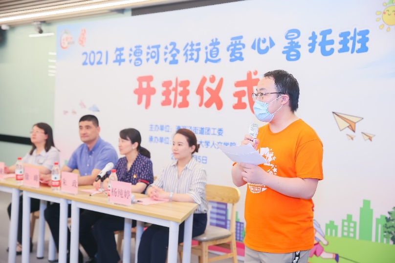 漕河泾街道人大工委副主任徐峰对参加本期爱心暑托班的小朋友表示热烈欢迎,向ok138cn太阳集团529的志愿者致以衷心感谢,并提出了三点期望:一是希望小学员们要遵守纪律、尊敬师长,成为家庭的好孩子、学校的好员工、社会的好少年;二是希望坚守安全底线不松懈,暑托班要把员工、志愿者安全放在至关重要的位置;三是希望整合资源,因人而异、因地制宜地设计出既有意义、又有意思的课程。
