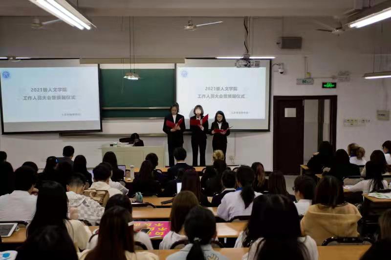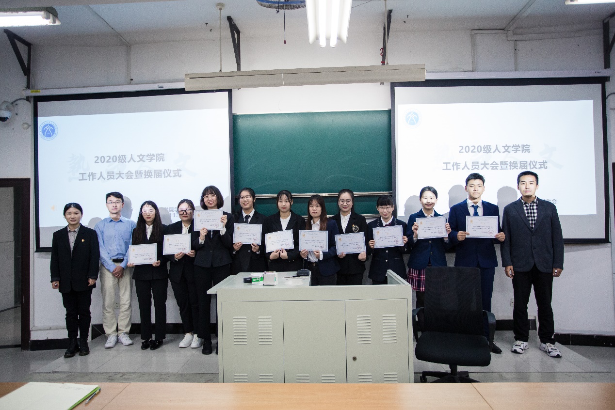 梁佳瑄老师、王振辉老师、司文超老师为各部门负责人颁发聘书。一张张聘书,承载着部门的责任、老师的厚望还有上一届负责人们的期许。期待新一届的负责人们带领着新生力量共同努力,共同建设好人文团学大家庭。