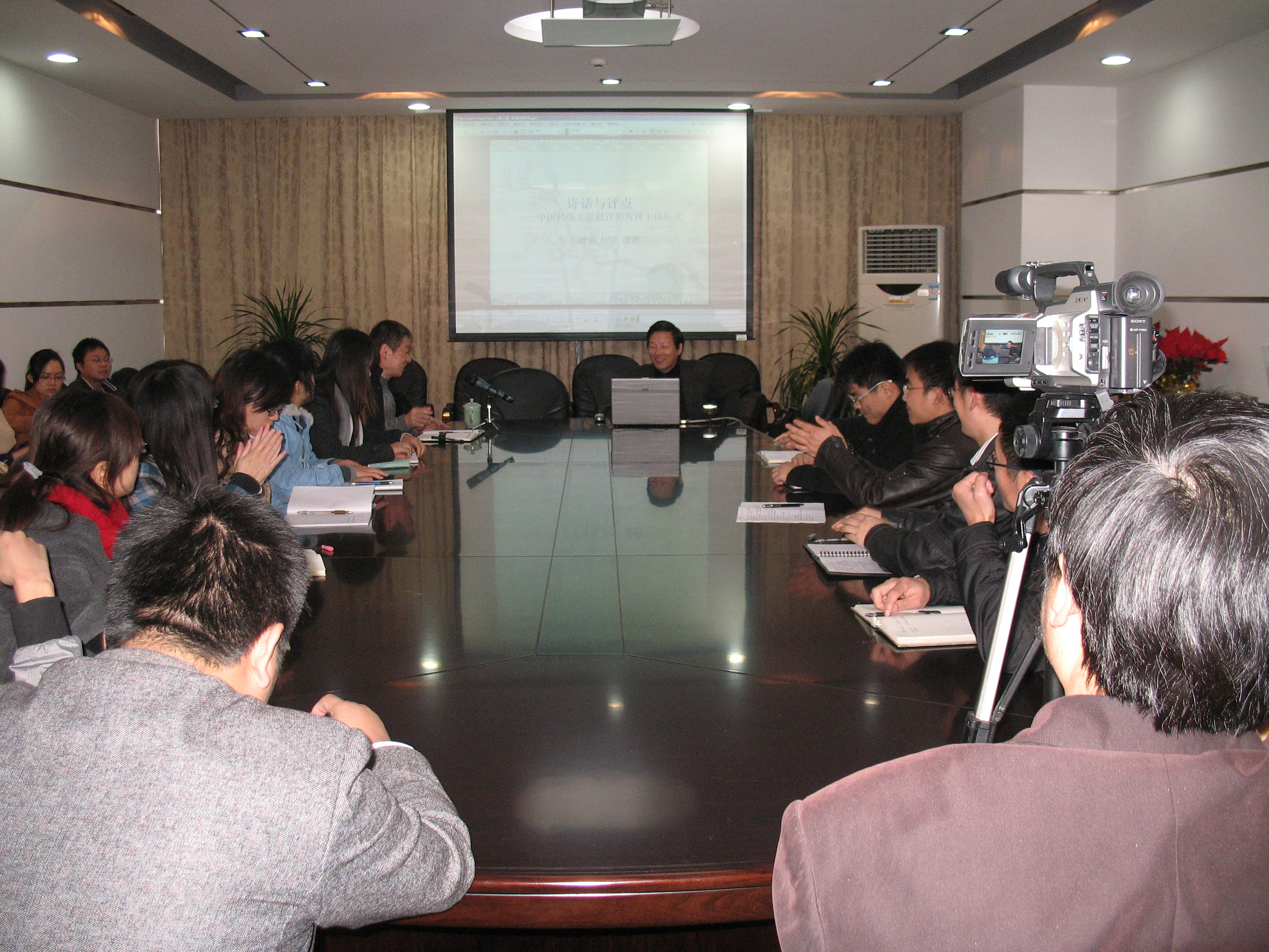 12月6日教育部*、华东师范大学中文系主任谭帆教授做客公司人文大讲堂,为公司师生做了一场题为《诗话与点评:中国古代文学批评的两种主体形式》的学术讲座。詹丹教授主持讲座,公司古代文学等专业的研究生聆听了讲座。