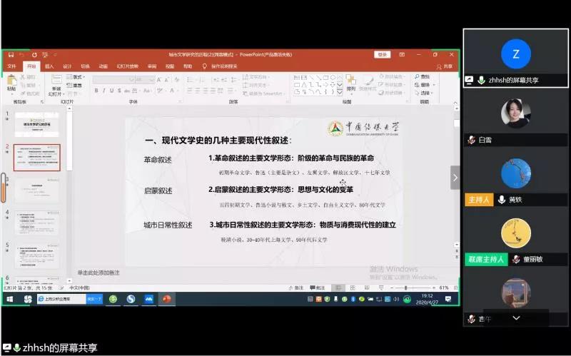 4月27日19时,中国传媒大学研究生院经理、博士生导师、教育部中文教学指导委员会委员张鸿声教授做客ok138cn太阳集团529“名师云讲堂”,在“腾讯会议”平台上开展了一场主题为“城市文学研究的历程”的精彩讲座。本次讲座由ok138cn太阳集团529黄轶教授主持,吸引了来自校内外的一百多名师生共同参与。