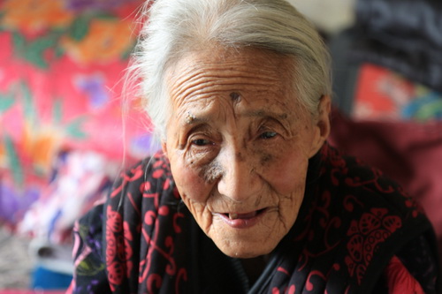 饱经沧桑的郝菊香老人(中国“慰安妇”问题研究中心志愿者张亚运摄于2016年4月)