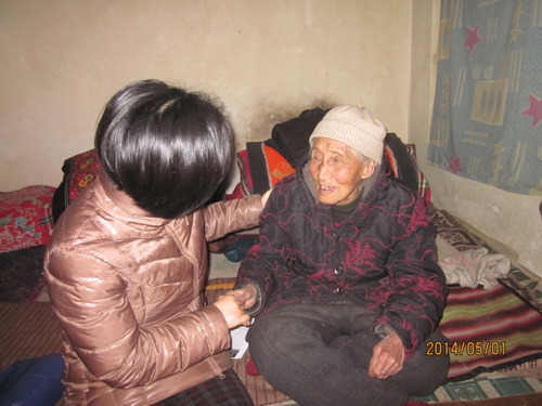 2014年5月,陈丽菲教授带领研究生,代表中国“慰安妇”问题研究中心到山西武乡探望郝菊香老人。(赵蓓红、苏圣捷摄)